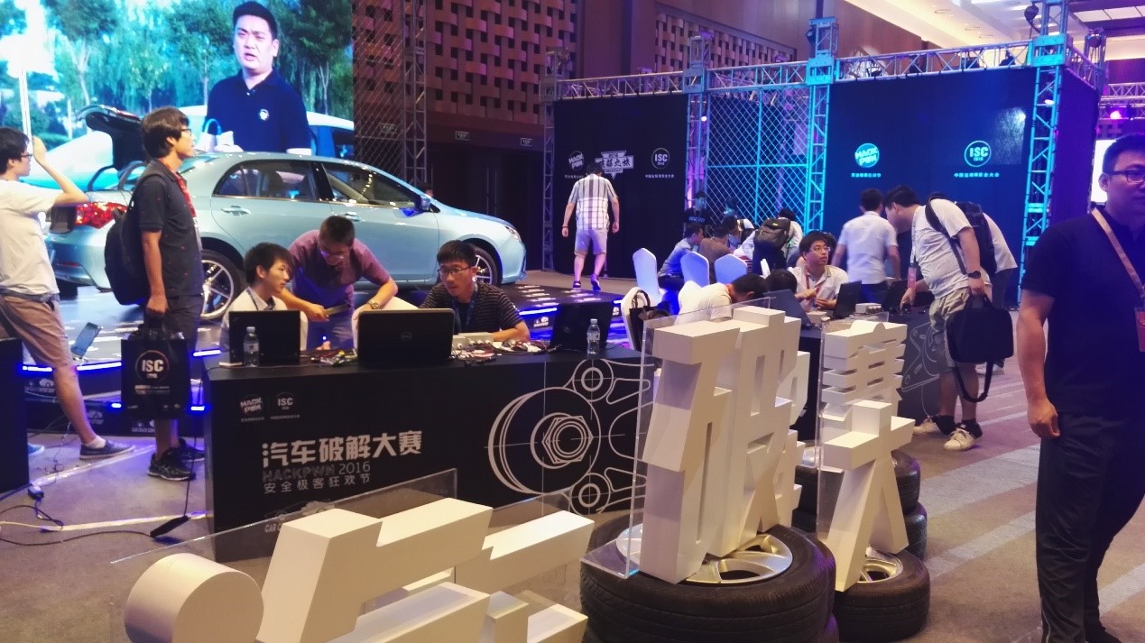 2016年8月16日下午,在2016年中国互联网安全大会上,由360汽车信息安全团队主办、比亚迪汽车和英特佩斯公司赞助支持的2016 HACKPWN首届汽车破解大赛在北京国家会议中心举行。本次汽车破解大赛由北航、浙大、烽鸟出行等高校及单位组队参加,比赛中要求各参赛队按照比赛规则和要求分别破解车门、车灯、传感器等车身元器件,最后通过逆向协议对车辆实现控制。